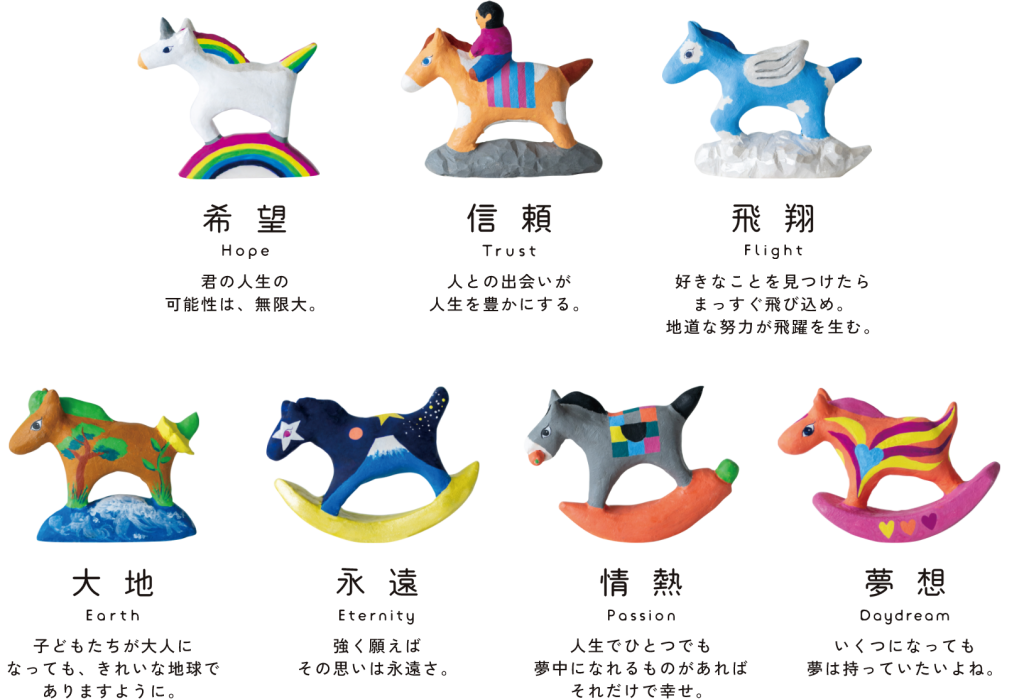 来年は1月3日より初売り営業致します。初売り先着で子どもたちの絵をヒントにデザインされた、夢と希望があふれる午(うま)たちをプレゼントいたします。2026年もいいことがありますように。